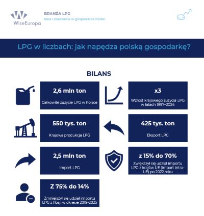 Raport wpływu LPG na gospodarkę opracowany przez think tank WiseEuropa powstał, aby pokazać znaczenie LPG dla polskiej gospodarki. Istotna jest też rola gazu płynnego na obszarach wiejskich. Są w Polsce miejsca, gdzie nie dociera infrastruktura gazowa, a sieci niskiego napięcia często ulegają awariom. Właśnie tam – na terenach trudno dostępnych, górskich i słabo zaludnionych – zalety gazu płynnego jako taniego i wygodnego źródła energii, ujawniają się w pełni. LPG to zabezpieczenie energii i dodatkowe wsparcie w przypadku awarii infrastruktury krytyczne – komentuje Bartosz Kwiatkowski, Dyrektor Generalny